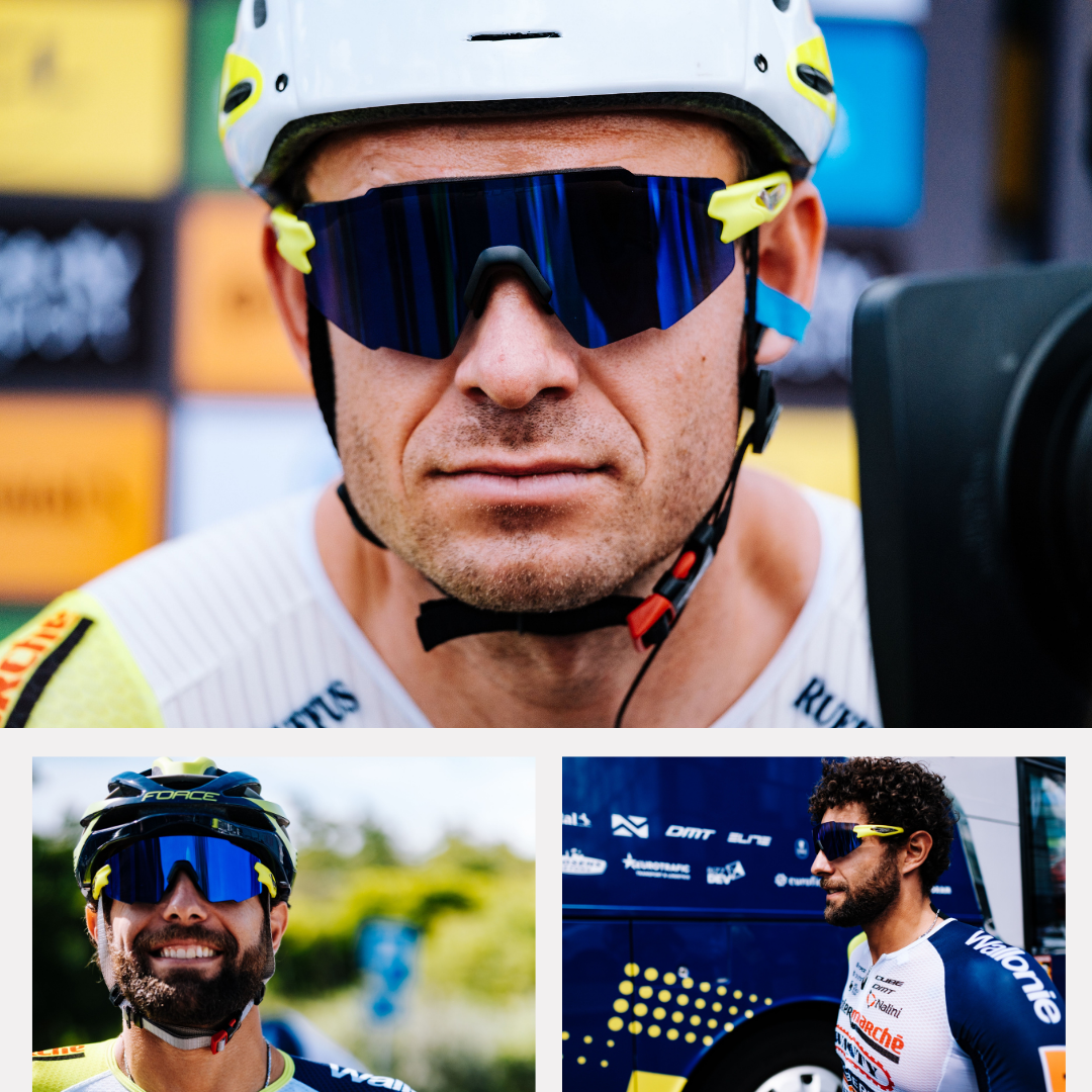 Brýle bez obrouček jsou v profesionálním pelotonu oblíbené a jsme rádi, že nyní můžeme jezdcům tyto brýle poskytnout. Standartem je pak hydrofobická úprava H2FOBI, která zvyšuje odpudivost vody a nečistot a navíc zabraňuje poškrábání skel. Úprava ANTI-FOG pak zabraňuje zamlžování skel. Obroučky v týmových barvách jsou samozřejmostí. Doplnili jsme je o modrá zrcadlová skla a také o fotochromatická.